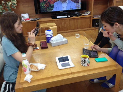 おおたか、ジャンボと一緒に、任天堂のゲーム「ガールズモード」をプレイ中。