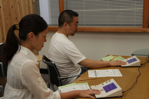 「加速度脈波」というものを機械に指先をちょんと乗せてはかります。