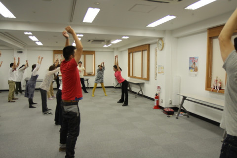 ラジオ体操・第2 集計を待つあいだ、元NHKの体操のお姉さん出身、藤元直美さんにラジオ体操「第2」を教わります! うわ! 懐かしい! そんなだったそんなだった! やったのはじめて! え、ホントー? というような声が上がるなか、教わったのですが‥‥しかし、やっぱりけっこうキツイです。 「第1」が60歳代の人を対象に考えられたのに対し 「第2」は40〜50歳の人を想定しているとのことで、よりハード。 ほんと すごいね、ラジオ体操!という感じ。 2012/10/05 15:54 |
