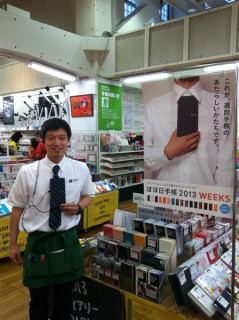 東急ハンズさんから。 10月1日に 「ほぼ日手帳WEEKS」の店頭販売がはじまって以降、各店舗から、たくさんのメールが届いています。 本日も一通、ご紹介。 ____________________ 【東急ハンズ三ノ宮店】 お客様の評判も上々で、これからもっともっと売れ行きが伸びるのが期待できます。 私は、このカラーを使おうかな。 ____________________ ふむふむ。 そのWEEKSは、タイ&チーフから、ずばり、「レジメンタル」! ポスターと同じポーズ、いいですね。 たまたま今日、ミーティング中に 「このポスターいいよね。」 って、話をしてたんですよねー。 (手前味噌で、自画自賛なんですけどね) 店頭でこのポスター見つけたら、 「WEEKSは、近いっ!」 連休中に、手帳売り場に行かれる方は、ぜひ、ほぼ日手帳WEEKSのタイ&チーフを触ってみてくださいね。 手帳なのに、ネクタイの質感、いいですよー。 2012/10/05 18:13 |