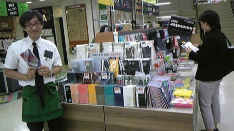 WEEKSのお店から。 「ほぼ日手帳WEEKS」の店頭販売がはじまってから一週間とちょっと過ぎました。 本日も、WEEKSのお店から届いたメールをご紹介しますね。 _____________________________________ 【文具とカフェの店 スイッチ】 久しぶりにネクタイを締めましたスイッチです。 この水玉ネクタイ柄が人気なんです! 使いやすさ、オリジナル性がUPするWEEKS用のアクセサリ文具も販売中。 ほぼ日の本もありますよ♪_____________________________________ こちらは「小さいことばの原画展。」でもお世話になった和歌山県のスイッチさん。 原画展の時には、来場した方から寄せられた ステキなギャラリーノートの写真も送ってくださいました。 赤シャツにピンドットネクタイ、決まってます! (ちなみにいま原画展は福岡で開催中です。) つづいては、東京・渋谷から。 _____________________________________ 【東急ハンズ渋谷店 牛若さん】 「お気に入りは、 やはりホワイトラインブラックです。」 _____________________________________ 店頭でお客さんがいらっしゃる時間に撮ってくださったんですね。 ありがとうございます! ネクタイは、ピンドット! 手には、マドラスチェックレッド! しかしっ、お気に入りは、ホワイトラインブラック! うーむ、奥が深いっ。 (いやっ、深くないか。) また、メールが届いたらご紹介しますねー。 2012/10/09 19:15 |