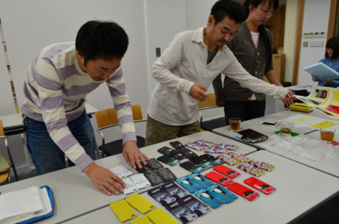 色校正が上がってきた! ボチボチ報告をしているiPhoneケース。 いよいよ‥‥ケースの色校が中国から届きましたよ。 なぜ、色指定のチップではなくデータの仮色でサンプルをつくってくれるのだ‥‥というようなアクシデントはあったものの、 (よくあることである。) なかなかに素敵な仕上がりです。 つるつるのコーティングにするかザラザラのコーティングにするか迷うところだわ〜。 チームの中ですでにiPhone5にチェンジしている 「耐久性テスト」という名目のもと、すでに使い始めました。 わ〜い。 うれしいぞ。 かなりこまかく色味の調整が必要、ということがわかってきましたが、ファーストサンプルとしては抜群の出来でした。 のんびりしないように、がんばるぞ。 2012/10/23 17:04 |