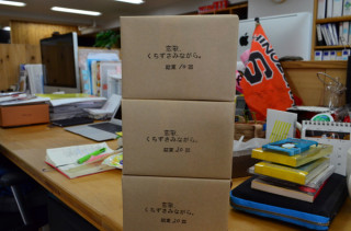 届いたぞ! 「凸版さんからお荷物です〜!」 という声がかかっていってみると、 「恋歌、くちずさみながら。」の見本が届いていました。 書籍とCDは11/14に同時発売ですが、一足早く、見本が届いたのです。 んっふっふ。 おーい、委員のみんなー。 とおもって社内を見回したらだれもいませんでした。 ロケやら取材やらで全国に散っているようです。 なので、この本の校正をしてくれたりかすにもっていただきましょう。 永田と私が作る本は、かならず、りかすに最後の最後の校正をお願いしています。 なぜならば、プロも見落とすまつがいを、意地でも拾ってくれるからなのです。 いつも、お世話になっています。 そして、 「恋歌くちずさみの広場」では、本日、CDのほうのマスタリング作業についてのレポートが掲載されています。 なぜ、 歌ってすごいなーと思えるすてきなレポートです。 ぜひ、ごらんくださいませ。 (※去来=なにかがふいに過去の記憶に触れ、 涙がとまらなくなりその場を中座してしまう様。 恋歌くちずさみ委員会用語) 2012/11/01 11:19 |