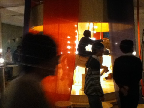 みなさま、マルチスピーカーに耳をかざしたりメリーゴーランドに乗ったり記念写真を撮ったり、ああ、自由だ。