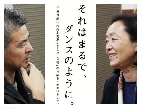 「動きなはれ。」のかた 昨日よりスタートした元世界銀行副総裁の西水美恵子さんと糸井重里の対談 「それはまるで、ダンスのように。」 すこし前の「今日のダーリン」にて おおぜいのかたからメールをいただいた 「今日のダーリン」でもありましたので、連載スタートとともに、ここに、ご紹介させていただこうと思います。 ーーーーーーーーーーーーーーーーー 今週の火曜日に、元世界銀行副総裁の西水美恵子さんにお会いしました。 「深い感激を味わいました」 ということだけ報告しておきます。 でも、ひとつだけ漏らしておきたいひと言があります。 話の前後を省略して、紹介します。 西水さんが、ある人にメールで書いたというひと言。 < 動きなはれ。> 標準語で言ったら強すぎるような命令形とか、つい、関西弁になるのだそうです。 このひと言の、なんとも軽快で深みのあることよ。 状況とか、誰に宛ててとか問わずに、 「動きなはれ」だけ耳や目から受けとめてみてください。 ぼく自身、季節の変わり目のせいか、ちょっと疲れたなぁと思っていたところでしたが、じぶんに、「動きなはれ」だけ言ってあげます。 大きな意味にとらえて世界に向けて羽ばたいたっていい。 からだがなまってるな、と散歩に出かけてもいい。 とにもかくにも、世も、人も、動いているものだ‥‥。 じっとして考えこんでいても、見えてくるものは少ない。 < 動きなはれ。> です。 ーーーーーーーーーーーーーーーーー 西水美恵子さんとの対談は14日(金)までつづきます。 よろしければどうぞ、お読みになってみてください。 2012/12/04 11:00 |