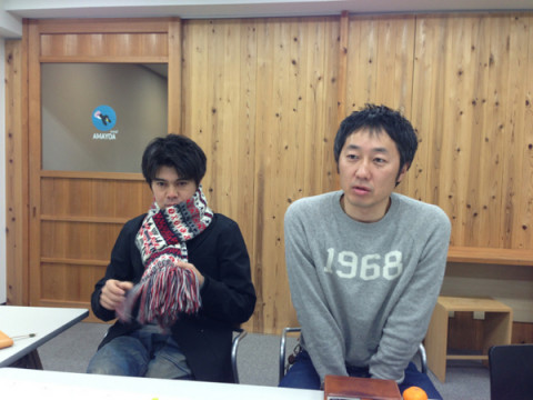同じ柄ぽい。 今日は月曜日なので、 「読み物チーム」の会議の日です。 枕が長いことで有名な 「読み物チーム」の会議です。 さて、今日の枕はといえば、おっくんんが髪を切ってきたことからはじまりました。 いつも前髪が長いので、おっくんとしゃべるときは、心のなかで、前髪ののれんをかきわけていましたが、その必要が無いくらいに短くなりました。 案外眉毛がしっかりしていますね。 からかっていたら、おとなりのながっちゃんが、 「おっくん! そのマフラー!」 といいます。 なにかとおもったら、 レッグウォーマーとマフラーの色合いが似ていました。 なるほどね。 ところで、永田さんはももひき系なものでなくて、レッグなウォーマーを使うの? 「ももひき系って、 あつくなったときに困らない? ずっと外にいるならいいけどさ」 そうだねー。 脱ぐのめんどうだし、脱いだあとのそれは、シャレにならないしね。 2012/12/17 17:01 |