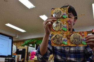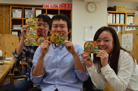 武将ペロティ。 社内をぶらぶら歩いてたら、おじゃぶ先生から声がかかりました。 「あ! 今年も!」 と。 なになにといってみると、ええ、ことしも彼は、武将ペロティをもっていました。 東海地区限定です。 去年は、「背徳者好き」ということで明智光秀を頂戴いたしましたが、今年は、「佐幕派」ということで権現様をいただきました。 あ、どうやら、ことしの光秀は、ぐっさんの腹におさまるようです。 おじゃぶさんとこには、織田信長、豊臣秀吉、柴田勝家、本多忠勝。 が、まだあるようです。 誰が誰を食べるのやら‥‥。 あ、そうか、権現様といかいいながら、たべちゃうのか。 新年早々まことにどうでもいい投稿をすみません。 ことしも、どしどしどうでもいいことを投稿する可能性がありますので、あらかじめおゆるしいただければ幸いです。 2013/01/07 14:36 |