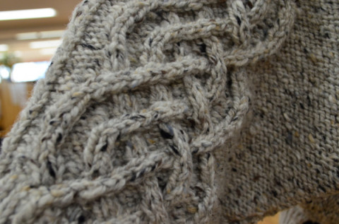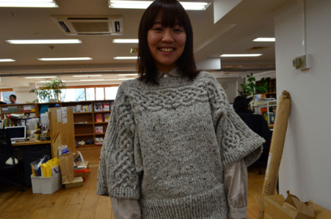 みちこさん編み上がり。 さて、みなさん、フェイスブックのほうの ほぼ日あみもの友の会もなかなかの盛り上がりをみせています。 会員のみなさん、じゃんじゃんと作品をしあげていらっしゃいますが、弊社みちこも、お正月にやりました! ドルマンセーターをやったりましたよ! わ〜〜! すてきすてき〜。 こちらは、三國万里子さんの 『冬の日の編みもの』からの作品。 肩口のなわなわ模様がケルトっぽくて素敵なのです。 そうそう、フェイスブックの 「編みもの友の会」は、完成してなくても、写真をアップして、励まし合うという会なので、みなさんも遠慮なくどうぞ。 2013/01/07 18:31 |