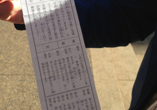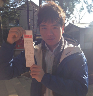 メがでるおみくじ。 昨日、お天気の良い中、 約束の時間は、10時30分。 ちょっと早くつきすぎたので、途中にあった神社に立ち寄りました。 「おみくじあるー。おみくじひこう〜」 と、言い出しっぺ田口がひきあてたのは、なんと『凶』。 「田口さん、大丈夫です。 『凶』は、囲みの一番上の辺があいているということで、中の『メ』が出る、つまり『芽が出る』ということで、縁起が良いとも言われているんですよ。 田口さん『芽が出ます』大丈夫です。」 「‥‥‥ふじたさん‥‥やさしい。」 ちなみに、 2013/01/09 19:10 |