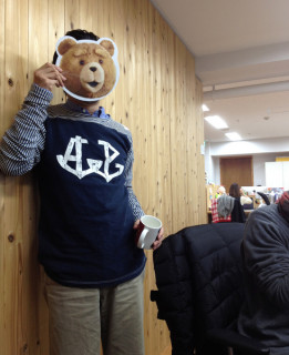 くまお? となりの席の く、くまお? それにしては、ちょっと、身体がじゃっかん大きいし、服も着てるし。 よく見れば、今、テレビのCMで見かける『ted(テッド)』ですね。 あの映画、日本語版の吹き替えを 有吉弘行さんがしてるというので、けっこう、おもしろそうなんだけど、くまおとちがって、テッドは、かなり、オヤジなくまだとか。 くまお、見間違ってゴメン。 くまおは、オヤジではありません。 今日の「くまお」のお話しも、いつもながら、キュートです。 月、木、週2回連載の「くまお」、1日の、お休み前に読むのも、疲れがとれて、気分よく眠れて、 (そんな気がするんです。) ちょーおすすめです。 ※くまの人は、 2013/01/10 22:50 |
