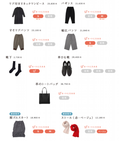 「hobonichi + a.」 こんにちは。突然ですが、2012秋冬の 「hobonichi + a.」の販売終了のお知らせです。 今月1月いっぱいでほぼ日での販売を終了したいと思います。 大変ありがたいことに、ご好評につきまして、現在販売しているものが残りわずかとなってしまっているのですが、もしご検討されている方がいらっしゃいましたら、一月中にどうぞよろしくお願いいたします。 春先まで着ることができる、TPOを選ばない万能アイテムがばかりです。 自分を元気にキレイに上品にみせてくれます。 そうでした! 大橋さんのお店のほうで リブ付きVネックワンピースと 千鳥格子の幅広パンツの素敵なコーディネートが紹介されていました! (一枚目と二枚目の画像) ・リブ付きVネックワンピース ・千鳥格子の幅広パンツ アイテムも可愛くて素敵なので (かなりトキメキます!!!) ぜひ参考にしていただければと思います。 ページ見てるだけでも楽しいですよー。 コンセプトのページの大橋さんのイラストも素敵なのでごうぞご覧ください。 ちなみに今の販売状況は三枚目のお写真です。 こちらのページからいけますよ。 終了間近になりましたらまたご連絡させていただきますー。 2013/01/11 14:30 |