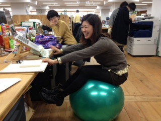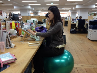 ちょっと油断するとバランスが崩れて後ろにぐいーっともっていかれますが、仕事をしている(キーボードを打っている)ときは安定するそうで、そのまま自然と仕事を続けていました。