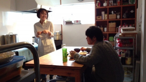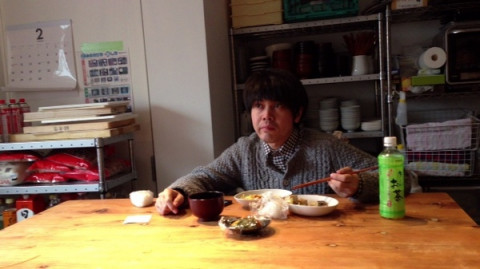 ひとり、キッチンで食べていたのですが、キッチンのテーブルって高さがあるので、おっくんが小さく見えて、なんだか子どものようです。