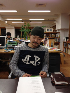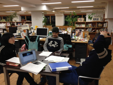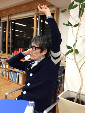 ボーダー研究員 昨日から開所いたしました、 「ほぼ日ボーダーシャツ研究所」。 ほんとうに着たいと思うボーダーシャツを井伊百合子さんと轟木節子さん、お二人のスタイリストと一緒に考えてつくろう、という活動をしています。 どうぞよろしくお願いいたします! 先日、ボーダー研究員たちがミーティングをしていたところ、ふと、気がつきました。 よくみれば、みんなボーダーでした。 ちなみに、 「最近、五十肩で右腕が 痛くて全然あがらないけど、 左腕は、ほら、あがるんですよ」 と、実演してくれたところです。 2013/02/19 15:11 |
