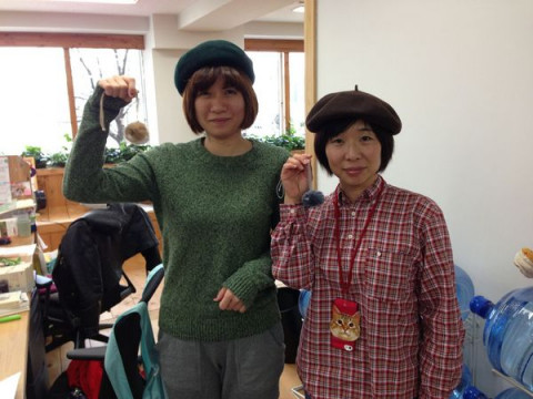 ベレーズ 職場にふたりもベレー帽がいるのってやっぱりなんかちょっと変じゃないですか。 いや、いいから、ポーズとらなくて。 だから、いいから、持ってるもの見せなくて。 職場にふたりもベレー帽がいて、カメラ向けたとたんにそろって持ってるもの見せてカメラ目線になるってなんか、やっぱり、変じゃないですか。 どうやら明日の 「ネコの日特別企画」の準備でもあるらしい? 弊社の乗組員たち、明日の「すばらしきくだらなさ」を目指し、それぞれにテンションがおかしくなっているようです。 どうぞ、明日を、おニャのしみに! 2013/02/21 14:59 |