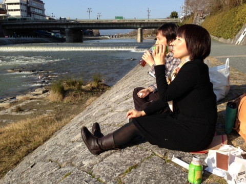 とても充実した打ち合わせを終え、いま、鴨川べりで休憩中です。