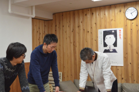タイトルや表紙や。 中身の進行が、諸事情によって遅れてしまっている我々。 いまは、タイトルや表紙などたくさんのじかんを一気に取れなくても進められる部分の仕事をしています。 表紙をかいてくださる方もきまりました。 タイトルも、2案から1案に絞られます。 いろいろ打ち合わせ中だったので、ひっそりカメラをむけたら、社長がピースをしてくれました。 まわりこんだら、清水さんもピースしてくれましたが、永田さんだけはしてくれないのよね。 2013/03/07 20:11 |
