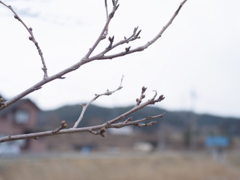 桜の様子を見に行ってみると、まだしっかりと固いつぼみ。