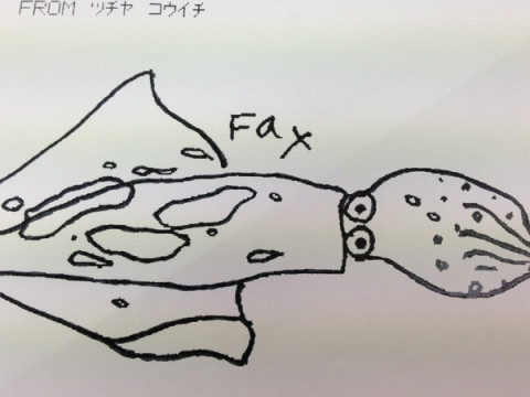 イラストレーター ひとつ前の投稿で、和田誠さんが素早く描き足したのが2枚目の写真の「。」です。 すごいなぁ。 こんな「。」をさささっと描くなんて。 シンジラレナイ。びっくりいたしました。 いや、和田さんを目の前に、そんなことを言ってもしょうがない。 だって和田誠さんですもの。 それから、写真3枚目以降のイラストをごらんください。 これらは表紙まわりに入るモノクロの絵なんですけれどもね、 (箱入りの2冊組の本なので、 外からは見えません) このイラストも素敵でしょう? さて、この絵を描いたのは、いったい誰でしょう。 答えは、和田さん、ではありません。 土屋耕一さんなんです。 念のために申しますと、土屋耕一さんはコピーライターであります。 土屋さんが、お知り合いの方にファックスで送られた私信に添えられていた絵なのだそうです。 (5枚目のイカの写真がファックス原紙) 和田さんが、そのファックスのイラストのジラジラした粗い部分を修正して表紙に使用した、ということなのです。 チョコレートも、エビも、イカも‥‥いい!! 2013/03/26 17:42 |