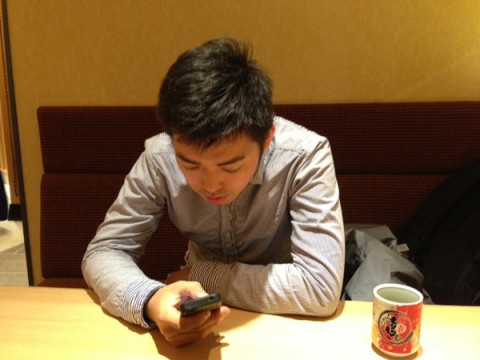 しかし田中があまりに携帯に夢中なので、写真を撮ってやりました。