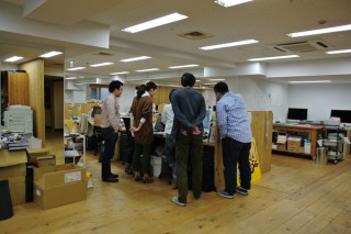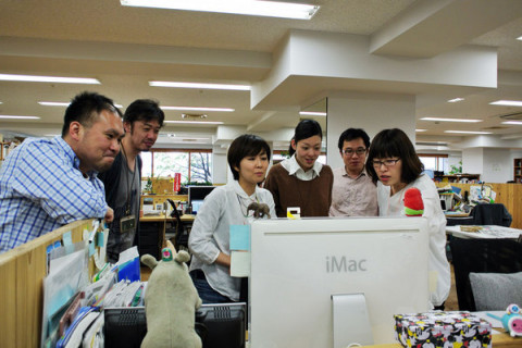 人が集まっている 本日、わたくしは自分で「原稿書きの日」と勝手に設定しておりまして、午前中の取材のあとはずーっと机でおとなしくしております。 ときどき、ふと顔をあげると人が誰かの机に寄り集まって 「わー」などと言っている光景に出会います。 なんなんでしょうかね、2〜3人で集まりはじめて漏れ聞こえるセリフなどをきっかけにどんどん増えていくんですよ。 集まるのが早い人、滞留時間の長い人、去り際の鮮やかな人、いろいろいます。 で、また この人はあんまり集まるタイプじゃないんで、おそらくなにか用事があってやってきたんでしょう。 しかし本日も、本題を 切り出せないでいるようでした。 2013/04/10 15:50 |