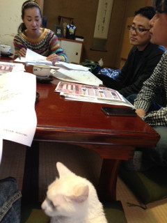 ニャんだか、机の上に難しい資料がひろがって白熱した打ち合わせとなっております。