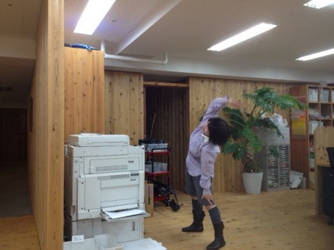 コピー機の前にいる
