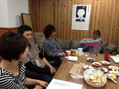 社長室で、ジャムチームの試食ミーティングをしているとき‥‥