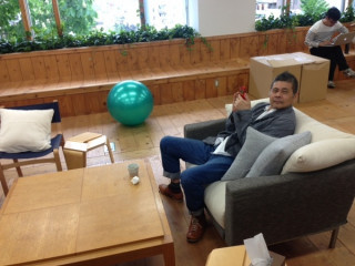 ミーティングとミーティングのはざまにいた社長が、ひっそりとソファでくつろいでいました。