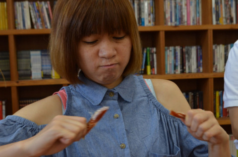 珍味! さて、みなさん。 先日、初回の 「珍味研究ゼミナール」の様子をお伝えしましたが、先週早くも2回めのゼミが開かれました。 今回の珍味は、 「帆立の燻油漬け」です。 これは、前回のゼミの投稿を読んでくださった方2名からの推薦でした。 ネットでいろいろ探して、取り寄せました。 帆立系の珍味はたいがい北海道産なので、ついでに、北海道が誇る珍味、 「鮭とば」も注文してしまいました。 豪華二本立てです。長いです。 さて、まずは「帆立の燻油漬け」。 今回のゼミ参加者の誰も食べたことがありません。 帆立の貝柱を強く燻ったものをオリーブオイルに漬け込んだもの、ということです。 もぐもぐもぐもぐ。 「こ、これは‥‥ダシがすごい!」 「この大きさだから、 1つ全部口に放り込んでしまうけど、 これは‥‥ちびちび食べるべきだ!」 「口の中にいれて、3時間くらい持ちそう。」 これまた、たいへんな珍味でした。 「長持ち」ということだったら、帆立の貝柱は燻油漬よりも、乾燥したやつのほうが、 「ふやかす」手間があるため、口の中の持ち時間は長そう。 お次は、鮭とば。 鮭を塩につけてから、乾燥させたもの。 ごく簡単な作りかたですが、その珍味感たるや相当なものです。 私は、珍味の殿堂、 「千歳空港のおみやげコーナー」に立ち寄った際にはかならず購入しています。 (お気に入りのお店は、佐藤水産)。 東京ではあまりみかけない珍味なので、ゼミの他のメンバーは、未体験ゾーン。 もぐもぐもぐもぐ。 もぐもぐもぐもぐ。 そうです、この珍味、 「これ‥‥なんだかわからないけど、 脳がごはんの味を感じさせる。」 「そうそうそうそうそうそう、 鮭おにぎりの味がする!」 「塩と鮭の組み合わせは、 自動的にコメ味を 脳が補填しちゃうの?」 いやはや、たいへんな珍味でした。 うまじょっぱいを堪能したところでゼミはお開き。 ‥‥というか、いつまで続けるつもりだ? 「珍味研究ゼミナール」。 2013/05/20 20:15 |