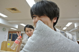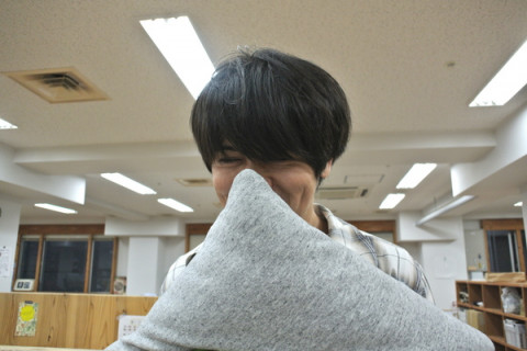 また出た 出た。今日も出た。 クッションおばけ。 みなさま、同じネタを何度も投稿してすみません。 でもほんとうに毎晩出るんです。 いま、 目立つのはしょうがない。 そして、社内どこでもクッションを抱きつづける、それもまぁ、よいでしょう。 こらこら しかし、おっくん。 その角をマイクのように口に当てて話すのはやめたまえ。 何言ってるか、ほんっと、わかんないから! 「あの‥‥ですね、吉‥‥の、ですね」 はいはい、はいはい。 「えーと、どうしたら‥‥いいすかね」 えーとね、どうしようね。 そういえばおっくん。 明日、いっしょに取材に出かける予定ですね。 クッションは、外には持っていけないから、クッションなしのおっくんを見るのは私はきっと半年ぶりくらいになるのではないかしら‥‥? ある意味たのしみです。 2013/05/15 19:36 |
