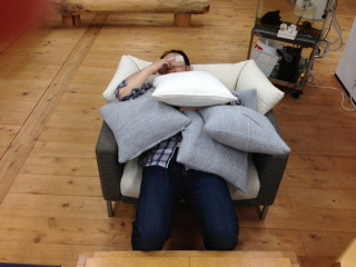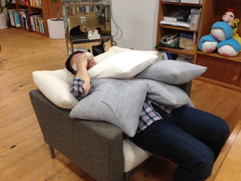 の経理チームは、一年で一番忙しい時期をむかえておりまして、推測するに、クッションに埋もれながら疲れた目をあっためて(もしくは冷やして)、休んでいるみたい。