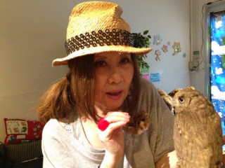 ふくろうさんと ふれあいにきましたー。 いま、約半年ぶりの 「タカモリトモコ全集」を開催しているタカモリさんと一緒です。 さすが、つねづね「猛禽類LOVE」を公言していたタカモリさん。 はやくも、おとなの大きなふくろうさんともなかよしになっています。 どの子も、か、かわいいな‥‥。 ふくろうさんは首が「270度」も回るそうです! そして本日はスペシャルゲストとしてえつこミュウゼさんも一緒です。 「ママでちゅよ〜」 なんと、ママでしたか! 2013/05/22 17:01 |