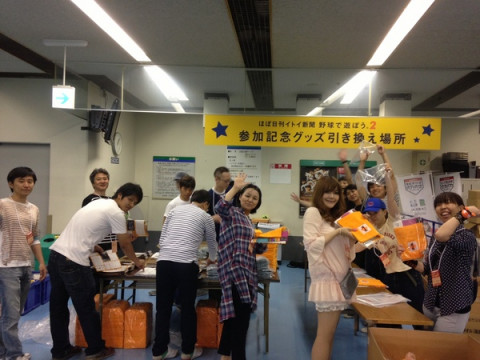 イベントのおみやげや紙資料などを整えて、袋にいれる作業中です。