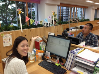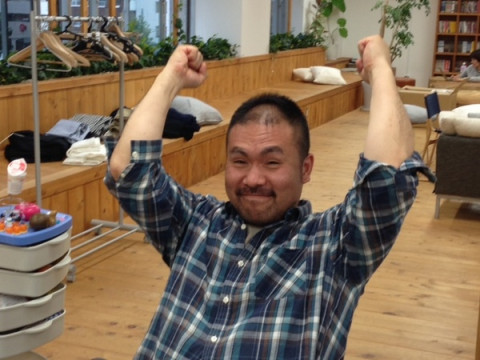 おつかれさまでした! 今日会社にきてみると、なにやら、めでたげな旗がはためいているではありませんか。 そこには 「祝 ・ 決 算 終 了 !!」 おおお!なんと! ここのところ経理チームのみんな、朝早くから夜遅くまで こんなになりながらがんばっていた決算がとうとう終わったんですね! おめでとうございますーーーー! この旗はあのときの! ということで、よろこびインタビュー。 「うれしいです! わたしは、ほんとうにうれしいです!」 井澤さんはどうですか? 「・・・・・・、・・・・・・。」 言葉にならない感無量なんでしょうか・・・? と、思っていたらちからいっぱいのガッツポーズ!! そして きっとおいしいものを食べていることでしょう。 食いしん坊のそろった経理チームは明日とんかつを食べにいって打ち上げするそうです。 たんと食べてきてねーー。 経理チームのみんな、おつかれさまでした! 2013/05/29 17:26 |