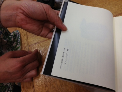の入稿。 毎週金曜日の不可思議連載 「週刊・おくさんほんとおかまいなく」の著者・えつこミュウゼさんが、入稿にやってきてくださいました! 作品とともに、すてきな新刊を携えて! あ! 装丁は、装丁界の鬼才そぶちゃんで、装画が「えつこミュウゼ」名義に! これは高橋源一郎さんの新刊 「銀河鉄道の彼方に」だそうです。 わー中にも、絵が! あ、なんか、いろいろまた仕掛けが! わーわー! ほしーーーーー! あと、わたしが一目惚れたのは、表紙の、宇宙船にイカが張り付いているところです。 これはどうやら 「ダイオウイカ」なんだそうですよ。 た、たまらん。 あしたの更新の回もすごいです。 どうぞ、おたのしみに! 2013/05/30 18:35 |