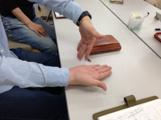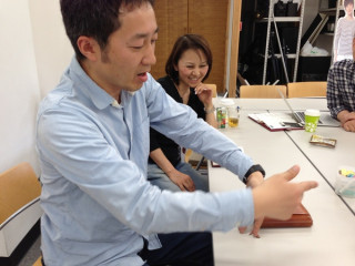 熱く語る永田 こちら、読みもののミーティング、特集の企画会議をしています。 隣にいた どうやら 「あの試合のあの審判の判断はこうだった」 というようなことを言っているようです。 その試合のようすを、自らの手を使ってあざやかに表現しています。 「ここで、ドカーンときて ボーンとなったんですよ」 私はその試合を見ていないのでなんのことやら、わからなかったけど、同僚が真剣に話しているのを聞くのは嫌いじゃありません。 この特集、おもしろくなりそうだなぁ。 はやく実現したいです。 2013/06/03 18:49 |