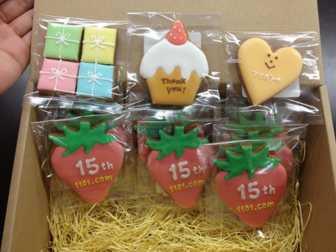 プレゼント! 15周年を記念して、 『くまお』の著者、あーちん先生からクッキーをいただきましたー! 開封の儀は、 「15周年お祝いクッキー」というタイトルで動画にしてアップしました。 乗組員がニューニューいっている様子を、 「ほぼ日動画まつり!」でおたのしみください。 一緒に入っていたカードが、またかわいいんです。 ‥‥あら、あらららら? くまおの左がわにいるのは、もしやブイヨンでは? うわーっかわいいーーっ! そして、このいちごは、 「15」周年だから、「いちご」。 もう、かないませんわっ! 改めて、ありがとうございましたー! 2013/06/06 12:32 |