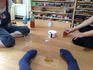 引き続き、祖父江慎さんとえつこミュウゼさんとシュークリーム飲み会をしています。