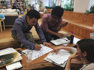 このミーティングでスケジュール表を作ろう、ということになったのですが、ヒロセ主導で、エクセルではなくイラストの一覧表に。