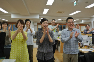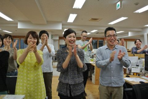 こうちゃん 『吉本隆明 五十度の講演』そして 『吉本隆明が語る親鸞』の編集作業をするために長い期間「ほぼ日」につめてくれていた編集者の深澤晃平さん(こうちゃん)が遊びにきてくれました。 数年前まで独身を謳歌していたのに、こうちゃんはこのたび赤ちゃんを連れてきたので一同、驚きました。 (2枚目の写真に写っているのが こうちゃんご一家です) なんだか、ふしぎです。 永遠の青年のように思ってたこうちゃんが赤ちゃんに「はいはいはい〜」とか言ってる姿。 じーんとしました。 みんなも 「こうちゃんがおとうさんになるなんて〜」 と、感動の拍手をしていました。 こうちゃん、また遊びにきてね。 そしてまたいっしょに仕事しようね。 今日、意見を求めましたがあいかわらず辛辣でよかったよ。 2013/06/14 20:03 |