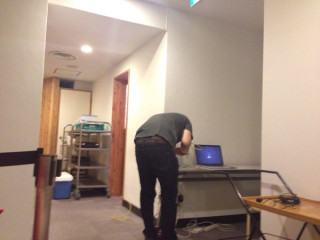 時間を前に宇宙部のカワモトがもくもくと準備中。