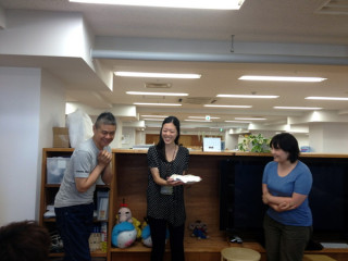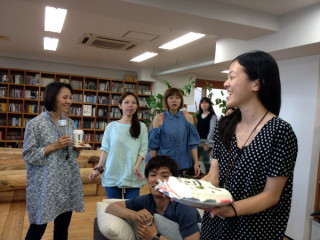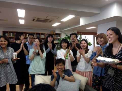 ほぼ日手帳ケーキ! 昨日6月27日は 「ほぼ日手帳Facebookページ」の1歳のお誕生日でしたー! パチパチパチ! そこで話題になったのが、こちらの「ほぼ日手帳」のケーキ! バタフライストッパーや2本のしおりがちゃんと再現されていてもったいなくて食べれそうにありません。 開いているページも、ちゃんと6月27日でした。 芸が細かい! 「ほぼ日手帳Facebookページ」は、 このうれしい気持ちを表現するべく、自らケーキ屋さんにお願いしてほぼ日手帳ケーキをこっそりと用意。 シャイな2人は、手帳チームだけにお披露目する予定でした。 (2枚目の写真) が、こんなにすごいケーキをわが社の乗組員がだまって見過ごすわけはありません! うわさをききつけて、どんどん人がまつまる、まつまる、まつまる‥‥。 あ、社長も! 最後にはみんなから拍手をもらい、とってもうれしそうな2人でした。 ひとまず、おつかれさまでしたー! ※本人からの報告は、 こちらの 「ほぼ日手帳SHOP NEWS」を どうぞー! 2013/06/28 16:02 |