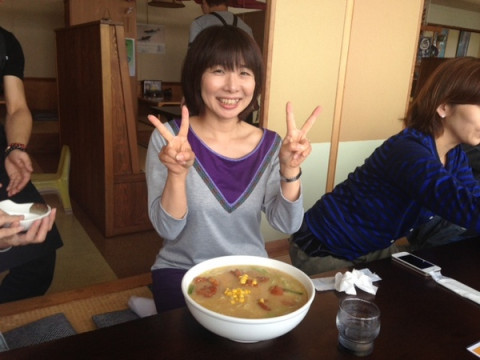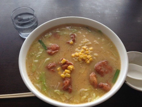 唐揚げイン 気仙沼で、お昼ごはんを食べようとしています。 いろんな名物がある食堂です。 迷いに迷って 「みそラーメン 唐揚げin」 をお願いしました。 蝋人形も同じメニューを注文していました。 すごく大きなどんぶりにたぶん2リットルくらいあるみそスープがつがれていてそこにもちろん麺も入っていて、さらに、大きな唐揚げが3つ入っていました。 びっくりしましたが、おいしかったです。 蝋人形も食べていました。 廣瀬さんは、 「ハモニカ定食」というのを食べていました。 それは、メカジキの煮魚定食でした。 2013/06/30 14:06 |