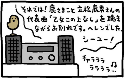 こんな曲! 連載2000回にむけて、カウントダウンがはじまった 「ブタフィーヌさん」。 きょうの更新である1995話では、DJヘレンが 「乙女この上なし」をラジオで流してくれてます。 この曲、マンガの中で使われた、ブタフィーヌさんが大ファンであるミュージシャン・立松鹿男さんの曲。 じつは、じっさいに聞くことができるんですよ。 ごぞんじでした? 「知らなかった!」というかた、ぜひ聞いてみてくださいね。 こちらのページから、どうぞ。 ちなみに歌詞はこちら↓です。 ──────────────────── 乙女この上なし作詞作曲 立松鹿男 ウエイト! お待ちなさいな うっかりさんあなたは いつも 忘れてるのね鏡の奥に 隠れてるほんとの あなたは プリンセススイート スイーター スイーテストみんなが夢みる お姫さま〜 じいやもばあやも 従えて 今日も散歩に 出かけましょう お菓子の森に 見えるものは なーに? そう それは 水面に浮かぶボート白い白い白い白いボート 乙女この上なしお砂糖だとか 蜂蜜だとかなにか甘いものでできている この世界 ウエイト! ごきげんいかが ほっそりさんあなたは いつも 忘れてるのね鏡のなかで 踊ってるほんとの あなたは バレリーナスイート スイーター スイーテストみんなの憧れ バレリーナ 映画も舞台も 飛びこえて夢のなかへと 急ぎましょう あら あれは おなかをすかせたアヒル白い白い白い白いアヒル 乙女この上なしティアラだとか チュチュだとかロマンチックでできている この世界 ・・・ 白い白い白いボート白い白い白いアヒル乙女この上なし 乙女この上なし乙女この上なし 乙女この上なしスイート スイーター スイーテスト──────────────────── 2013/07/01 17:23 |
