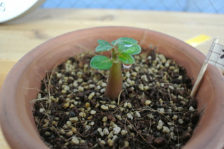 ただいま開発中! こんにちは、縁側植物係です。 (メンバーの ほかにも、ひそかに「縁側植物」している 乗組員が最近ちらほら増えています) 昨年プラントハンターの清順さんとのコラボーレーションで 「ほぼ日」で販売した 砂漠のバラにつづくあたらしい植物を栽培しています。 この植物が、我々しろうと園芸家でも発芽させ、育てることができるものなのか、たしかめているのです。 ごらんください、2枚目の写真。 「これぞ双葉!」というようなみごとな芽を出しております。 このまま順調に育てることができれば、次に「ほぼ日」であつかう植物になるかもしれません。 大きくなったら、かわいいぞー。 もちろんわたくしスガノの砂漠のバラ「小南くん」も順調に育っています。 水をやりすぎないように、毎日土をさわって乾き具合を確認するようにしています。 2013/07/08 13:50 |