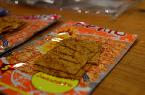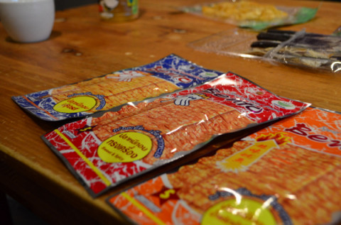 続き。 はからずも、2回連載になってしまった 「珍味研究ゼミナール」。 後編は、福岡の珍味とタイランドの珍味。 福岡の珍味は、「味付けあご」。 だしになる「あご(とびうお)」に味をつけた、というそりゃ、ダシになるもの食べるんだからうまかろうよ、という珍味界の大貴族のようなものです。 これは、先日糸井重里さんが、ジョニー・ウィアーさんに会いに福岡にいったときに、 とても短いお土産物色タイムに、 「ちんみちんみちんみ」 とぶつぶついいながらお店を物色して買って来ました。 旅先の心にはいつも「珍味」を。 ところで、あごは福岡の名産なのかしらん? こちら、たいへん、硬いものですが、やっぱりいいダシでます。 一口15分くらいはエンジョイできそうです。 通りがかりの 「あ、これお客さんにお出しした お茶のグラスを洗うあいだに いただきます。 あ! うまい!」 と、いい声で叫んでました。 最後がタイランド。 わたくし、タイランドからの定番のおみやげを、このBentoブランドののしいかにしています。 タイにもいろいろな珍味がありますが、どれもこれもパッケージがゆるくてやばい事が多いので、日本の人は食することに二の足をふみます。 (おいしいのに) しかし、このBentoブランドは、信頼のパッケージ! それは密封。 というわけで、大概の人が食べます。 珍味好きは、まちがいなく「おいしい」といいます。 私が見た中では味は3種類あるのですが、オレンジ色のパッケージは本当に危険なからさですので、要注意。 「うわっ!、 これ、マジすごい! 辛っ!」 そーなのよねー。 いちばんマイルドなのは「赤」ですが、それでも辛いです。 あ、形状はこういう、微妙に「蒲焼さん太郎」などに似ています。 ああ、どれも美味しかった。 もぐもぐもぐもぐ。 これにて、第三回珍味研究ゼミナールを終了いたします。 2013/07/11 19:53 |