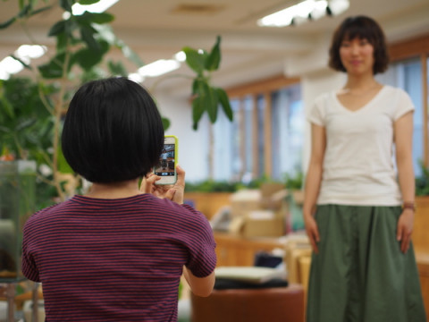 スマートな試着室 こんにちは。 暑いですね。 Tシャツ日和ですね。 夏のTシャツ「HAVE A NICE T!」と同時に、スマートフォン対応バーチャル試着室、 「スマートな試着室」もデビューしたことはみなさまご存知でしょうか? アルバイトの青井さんに実際に使ってみてもらいました。 まず全身写真を撮影し、 性別、あたまとかかとの位置、身長を入力。 するとTシャツがあらわれます! そして、タテ・ヨコのスワイプでサッと着替えることができます。 あっ これがにあうかも〜と思ったら、 このままカートに入れることもできちゃうんです。 まさにスマート。 すべてをひとつのマシーンでできちゃうのがいいところです。ぜひお試しを! まだお試し版なので、もしおかしなところがあったらぜひおしらせください。 2013/07/18 19:00 |