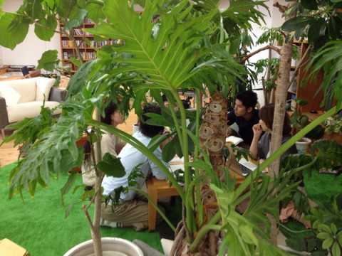 最近の打ち合わせは森の中が主流!