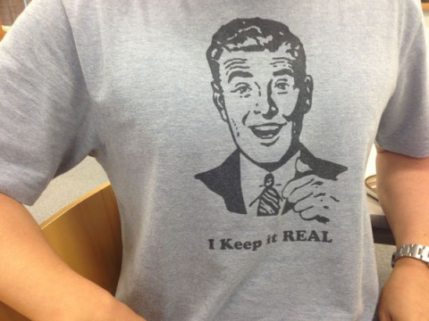 味Tを着る紳士。 味わいが深いTシャツ、味Tを着ているのだ。 今日も‥‥なんかね。 へんなおじさんいるし。 おじさんの上に 「まじめにやってるぜ! ちゃんとしてるぜ! ってことだよ。」 NY帰りの彼は、Tシャツに書いてある英語の意味をそんなふうに解説してくれました。 I Keep it REAL. このあいだ、まじめにしてないといけないところでにやけて、怒られました。 きをつけていこうとおもいます。 I Keep it REAL. 2013/07/30 14:38 |